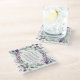 Der Untersetzer aus Inspirationsglas zeigt Wildblumen in floralen Aquarellfarben in sanften Farbtönen in staubigen lila-, rosa- und sanften Grüntönen. Es zeigt die Bibel Verse Zephaniah 3:17, "Der Herr, dein Gott, in deiner Mitte, Der mächtige wird gerettet; Er wird große Freude an dir nehmen, Er wird dich mit Seiner Liebe stillen, Er wird dich mit Singen freuen." _