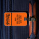 Gepäck- oder Taschenumbau in der Orange mit dem Text, "zerbrechlich, Griff sorgfältig".