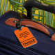 Zerbrechlich, Griff sorgfältig, orange Gepäckanhänger