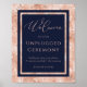 Elegantes Marineblau und Rose Gold "Willkommen zu unserer ungestopften Zeremonie" Zeichen, um Ihre Hochzeitsgäste wissen, um ihre Handys und Kameras während Ihrer Hochzeitsfeier zu vertreiben.