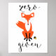 Affiche unique et amusante avec calligraphie moderne et illustration de renard. Cette affiche sera un parfait accent pour n'importe quelle chambre.