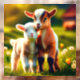 Zwei junge Lämmer genießen gemeinsam den Tag auf einer grünen Wiese – ein Moment voller Harmonie, Freiheit und ländlicher Lebensfreude. Digitale Bildmontage
