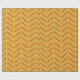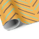 Dieses Verpackungspapier hat ein Zickzack Design der 70er Jahre in Retroblau und Braun auf einem Goldfeld.