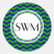 Zickzack blaue und grüne Monogramm Personalisiert Runder Aufkleber