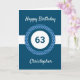 Eine personalisierte, blaue 63. Geburtstagskarte für ihn, die Sie mit seinem Namen auf der Vorderseite der Karte leicht mit dem Alter, das Sie brauchen, personalisieren können. Sie können die Insider-Kartenmeldung leicht personalisieren, wenn Sie gewollt haben. Diese personalisierte 63. Geburtstagskarte für ihn würde einen tollen Sake machen.