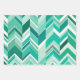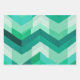 Ein lebendiges, abstraktes Stück mit Zickzack Farbtönen in Meeresgrün, Feldgrau, Minze und Türkis, das an eine spielerische und skurrile Atmosphäre erinnert, die an die Kinderkunst erinnert. Ideal für den, der nicht wirklich in Blumen lebt.