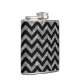 Angesagter und trendiger Zickzack Glitzer Look Flask. Dieser coole Kolben weist ein Zickzack Zickzackmuster auf einem silbernen Glitzer-Hintergrund digitaler Kunst auf.