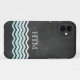 Weiße und türkisfarbene Chevronen auf einem Kalkboard-Hintergrund zieren dieses iPhone 5 Gehäuse. Das Monogramm kann leicht in einen vollständigen Namen geändert oder, falls gewünscht, gelöscht werden.