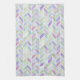 Zickzack Muster in Streifen und Wasserfarbe. Die Farben umfassen Purpel, Grüntöne und Blues mit gelegentlichem Vermischen von Dreiecksformen.