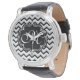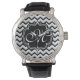 Zickzack, modernes Schwarz-Weiß-ZigZag Monogramm Armbanduhr