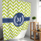 Erfrischen Sie Ihre Badezimmerdekoration mit diesem Zickzack, grün-marineblauen Duschvorhang aus Streifen. Das gewagte geometrische Design, kombiniert mit einem anpassbaren Monogramm, verleiht jedem Raum eine stilvolle und persönliche Touch. Dieser aus hochwertigem Stoff gefertigte Vorhang sorgt für Langlebigkeit und einfache Wartung, perfekt für moderne und elegante Badezimmer-Einstellungen.