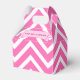 Gefälligkeitskasten mit Zickzack Muster in heiß rosa und weiß. Benutzerdefinierte Gastgeschenk-Felder. Ändern des Namens, um ihn anzupassen. Ideal für die personalisierte Dekoration des Party. Geschenkpackidee für Erwachsene und Kinder.