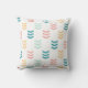 Zickzack Muster abstraktes Design in aquamarinem Grün, Minze Grün, Golden Gelb und Pfirsich. Dieses bunte Muster wird auf beiden Seiten des Kissens wiederholt.