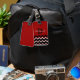 Mit Stil reisen... ein einfaches und modernes Monogramm-Design mit Zickzack Streifen in Schwarz und Weiß. Die rote Farbe ist ebenfalls anpassbar