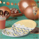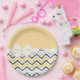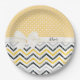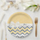 Fun Schwarz, Gelb und Weiß Thema mit trendigen geometrisch Zickzack Zickzacken und Polka Punkte. Passen Sie den Namenstext an oder löschen Sie ihn, wenn Sie diese Teller bevorzugen.