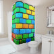 Dieser künstlerische Duschvorhang hat eine bunte Ziegelwand.