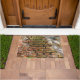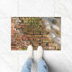 Diese Türmatte hat ein cooles Bild einer Ziegelmauer und einige Muscheln darauf.