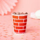 Diese Papiertassen haben ein Ziegelwanddesign auf ihnen.