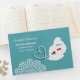 Ein lustiges und dennoch stilvolles Gästebuch für Paare, die in Mauritius heiraten, mit einer weißen Silhouette auf aquamarin mit den Herzen der süßen roten Liebe und so einfach mit Ihren persönlichen Namen und Hochzeitsdatum anpassen