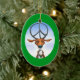 Mit diesem zweiseitigen Ornament mit Illustrationsfavoriten von John McKinley von McKinley Ink können Sie Ihren Weihnachtsbaum ganz besonders bejubeln. Urlaub Lieblings PEACE ANTLERS auf der einen Seite, und alberne SANTA CLOPS auf der anderen. Dein Baum wird dir danken!