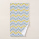Gelbe, graue, hellblaue, weiße Zickzackstreifen.