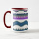 Enjoy every sip in style with this boho zigzag pattern coffee mug featuring bold blue, purple, teal, and white tribal wave artwork. The modern design adds a beautiful artistic touch to your morning coffee, tea, hot chocolate, or office desk setup. Perfect for the home, workplace, college dorm, or gifting.