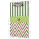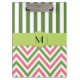 Zigzag, Zickzack, Streifen, Rosa, Grün, Monogramm Klemmbrett