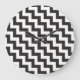Zigzags Round Wall Clock, Black and White Chevrons Große Wanduhr