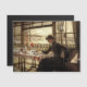 Viktorianische Zeitalterung der jungen Frau in ihrer Schiffshütte mit großem Fenster mit Blick auf Schiffe im Hafen. Vintage Kunstmalerei aus England von James Tissot.