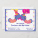 Diese niedliche und kundengerechte Geburtstags-Party Einladung kennzeichnet Füße eines Paarclowns mit übergroßen Clownschuhen in den hellen Farben.