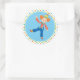 Dieser Zirkusmotiv-Aufkleber weist einen blauen Hintergrund auf, der von einem sich wiederholenden Fleck roter, blauer, gelber und grüner Sterne umgeben ist. In der Mitte des Aufklebers steht ein lustiger Zirkusclown, der auf einem Fuß ausbalanciert. Dieses Design ist Teil meiner Sammlung "Circus Themed Birthday Party". Clip Art von Prettygrafik Design etsy.com/shop/Prettygrafikdesign