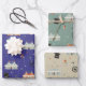 Niedliches und lustiges Zirkusmotiv-Packpapier auf blauem, minzgrünem und beigem Hintergrund. Ideal für Kinder jeden Alters.