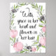 "Mit Anmut im Herzen und Blume in ihren Haaren" inspirierende Zitat Wandkunst.