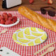 Teller aus Papier, die mit Zitronen bedeckt sind. Teil der Citrus-Sammlung