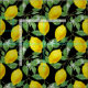 Hübsches fruchtiges Muster mit Zitronen auf einem schwarzen Hintergrund.