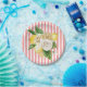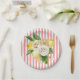 Zitronen und Rose auf rosa Streifen Pappteller