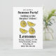 Zitronenfrucht Blick auf die hellgelben Zitronen Einladung originelles Design von Nisha Prabhu. Vollständig anpassbar. Personalisieren Sie Ihre Daten. Lassen Sie Ihre Ansammlungen mit unseren lebhaften "Blick auf die hellgelben Zitronen"-Einladungen aufblähen! Diese Einladungen mit sonnigen Farbtönen und erfrischendem Charme verleihen Ihrem Party mit Zitronenmotiven, dem Sommergrill oder der fröhlichen Feier den Set. Mit wunderschönen Illustrationen von plumpen, saftigen Zitronen vor einer fröhlichen weißen Kulisse, werden sie sicher die Aufmerksamkeit Ihrer Gäste zu erfassen und sie in der Stimmung zum Spaß zu bekommen! Ob Geburtstagsfeier, Brautparty oder einfach nur ein einfaches Zusammensein: lass dir die süßesten Momente des Lebens durch. Laden Sie Ihre Freunde und Familie ein, um einen Tag voller Lachen, Liebe und natürlich Limonade zu genießen!