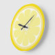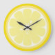 Eine niedliche Uhr, die wie eine Zitrone aussieht, die in zwei Scheiben geschnitten wurde.