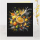 Brighten Sie jemandem den Tag mit dieser kühnen Zitrusgrüßkarte! Mit einer saftigen Explosion von Orangen, Zitronen und Limetten auf einem auffallenden schwarzen Hintergrund bringt dieses Design jedem Anlass Farbe, Energie und Freude. Im Inneren Links, damit du deine eigene, herzliche Nachricht schreiben kannst.