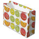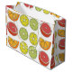 Citrus Fruit Large Geschenktasche Original Design von Nisha Prabhu. Feiern Sie stilvoll mit unserer Citrus Fruit Large Geschenktasche! Diese Geschenktasche, die mit lebhaften Bildern saftiger Orangen, zarter Zitronen und erfrischenden Limes besticht, erweckt das Wesen des Sommers und des Glücks und eignet sich perfekt für Geburtstage, Feiertage oder Feierlichkeiten. Diese große Geschenktasche mit bequemen Griffen für das leichte Tragen ist nicht nur praktisch, sondern auch eine stilvolle Wahl für jede Feier. Machen Sie Ihr Geschenkenerlebnis noch attraktiver, indem Sie es mit unserem koordinierenden Gewebepapier für einen kompletten Look verbinden! Helles und spielerisches Zitrusfrüchtedesign. Ideal für Geburtstage, Party und Feierlichkeiten.