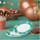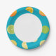 Diese Teller sind mit Limetten, Zitronen und Orangen auf aquamarinem, blauen Hintergrund gestaltet. Ideal für Menschen, die einen Pop in ihren Alltag gewollt haben. Ideal für Picknick, Abendessen oder einfach nur Essen vor dem Fernseher.