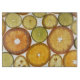 Orangen-, Limetten- und Zitronenscheiben schmücken dieses natürliche Schneidebrett.