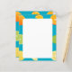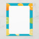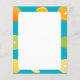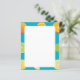Auf diesem Papier stehen Limetten, Zitronen und Orangen auf aquamarinem, blauen Hintergrund.
