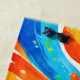 Eine wirbelnde Farbexplosion umgibt eine saftig orangefarbene Scheibe, die ein visuell atemberaubendes Stück bildet (Dieses Design wurde mit KI erstellt). Bestellen Sie noch heute und Embrace the Joy of Shopping!