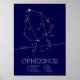 Zodiac Constellation Ophiuchus oder Schlangenträger. Die Farbe der Sterne ist real. Namen von Sternen- und Weltraumobjekten. Eine einzigartige persönliche Horoskop-Astrologie Geschenk. Sie können dieses Design auf hunderte andere Produkte übertragen, wählen Sie einfach eines aus der Produktlinie unter dem Bild. Vergessen Sie nicht, mit der Schaltfläche CUSTOMIZE das Bild auf dem Produkt anzupassen, es zu verschieben oder Text zu ihm hinzuzufügen.