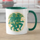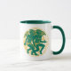 Gemini-Zeichen des Zodiaks in grün und gelb auf einer zweifarbigen Kaffee-Tasse.