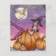 C'est une peinture à l'origine fait dans les aquarelles par moi, Nikki Burnette ! Rencontrez Zoe, très une sorcière d'amusement qui s'assied dans un citrouille avec des étoiles et des lunes sur elle les bas rayés. Elle a également un ami de hibou et de minou qui saute hors d'un citrouille. J'ai customisé l'image pour créer cette belle carte postale ! J'espère que vous l'appréciez.