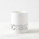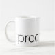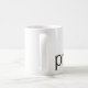 Eine weiße Tasse mit "procrasti" in HelveticaNeue.