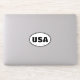 Maßgeschneidertes Land oder Staat Abkürzung Weiß oval Vinyl Sticker. USA. Erstellen Sie Ihre eigenen personalisierten Aufkleber für Auto, Gepäck, Fahrrad, Wasserflaschen, Laptop und andere Produkte. Einzigartige Aufkleber mit Kontur. Erhältlich in kleinen, mittleren und großen Größen. Fügen Sie Ihren eigenen Text hinzu. Ideal für internationale und nationale Reisen, Ausflüge, Ferien, Sportveranstaltungen und vieles mehr. Altes, weißes ovales Schild mit dem Aufkleber.