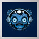 Vector Cartoon Illustration eines Zombie-Astronauten mit großen Augen mit einem Weltraumhelm mit einem gebrochenen Glasschild in Blautönen. Tags: Astronaut, Kosmonaut, Helm, Zombie, Raum, Raumfahrer, Monster, Kadetten, Leiche, tot
